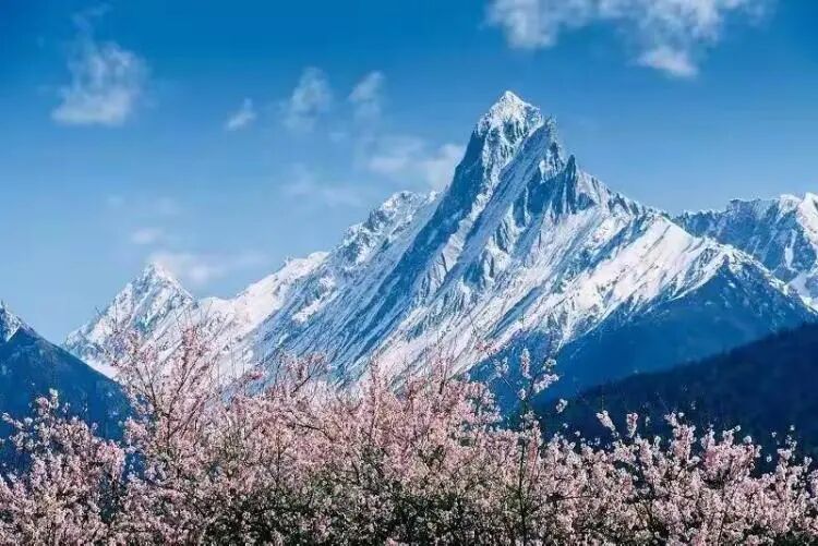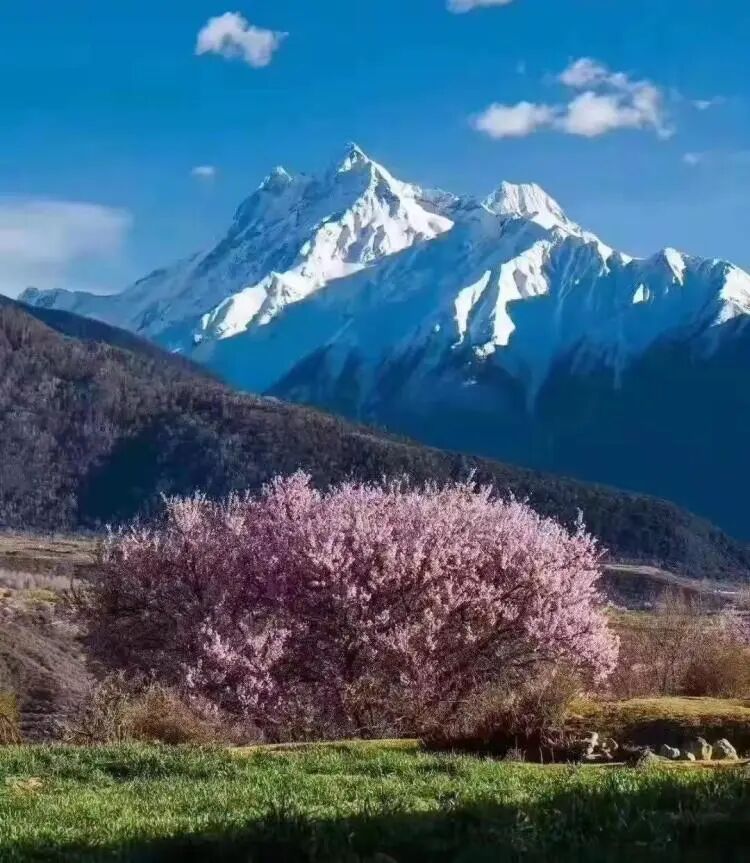 —雪山之下看桃花盛开—