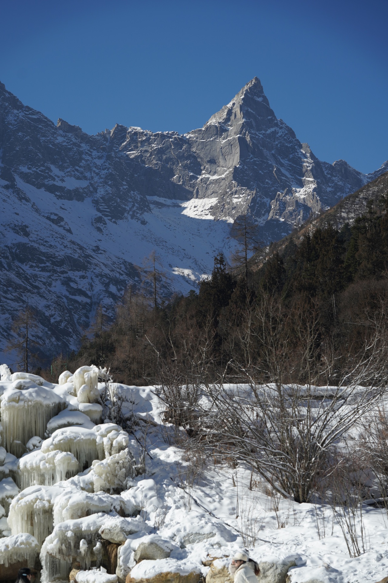 东方小瑞士毕棚沟,即便是初春,山峦、森林都被白雪覆盖,重峦叠嶂的群山银装素裹,像是一个个穿着白色披风的巨人。原始森林里,树木的枝叶上挂满了雪花和冰晶,形成了晶莹剔透的雾凇奇观,在阳光的照耀下闪烁着银色的光芒,宛如步入了一个梦幻的冰雪王国。